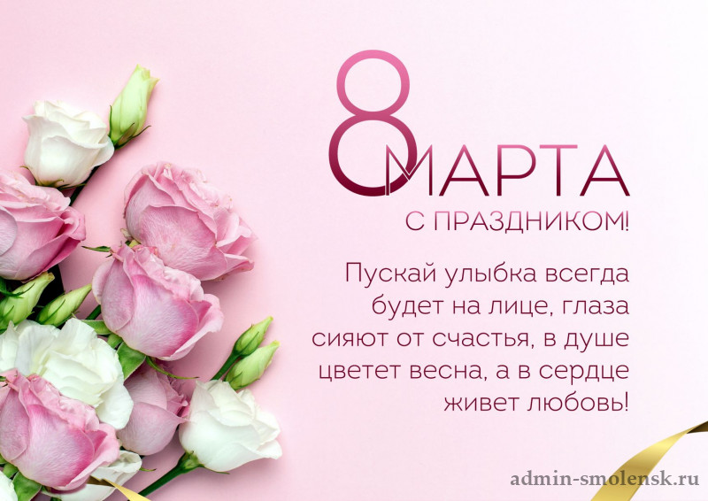Поздравляем Вас с самым весенним и нежным праздником — 8 Марта! Желаем Вам, чтобы каждый день Вашей жизни был наполнен любовью и уважением, а каждый вечер — теплом и заботой близких людей. Пусть на Вашем пути будет меньше препятствий, а больше радостных моментов и сюрпризов. Желаем Вам, чтобы Вы всегда чувствовали свою важность и ценность в этом мире! С праздником, дорогие женщины и мирного Вам неба над головой!