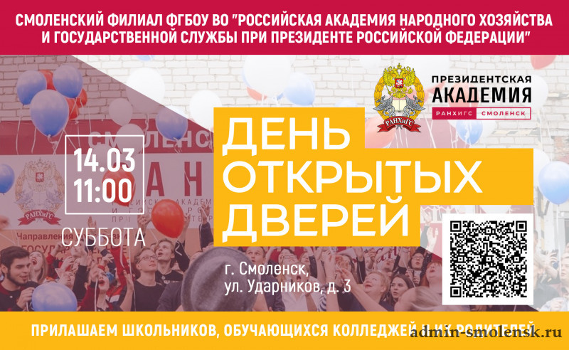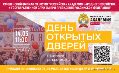 Приемная кампания уже не за горами, и чтобы помочь вам сделать осознанный выбор, мы подготовили актуальную информацию о запланированных на март-июнь днях открытых дверей в ВУЗах Смоленской области.